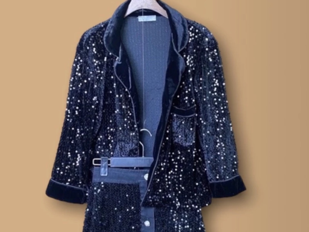 Nhung đen Áo khoác + Quần