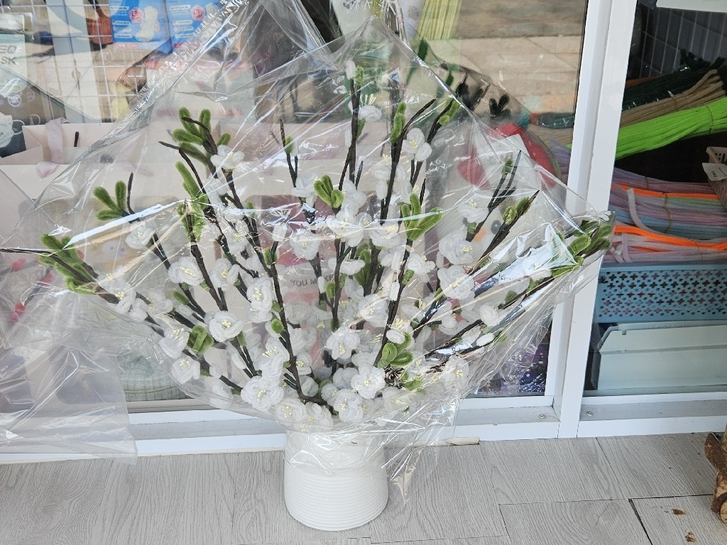 Chậu hoa đào trắng, đỏ nhỏ