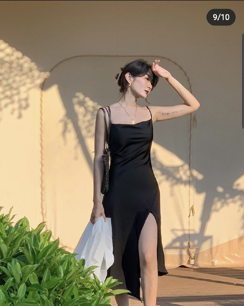 Đầm 2 dây xẻ tà đen- Order