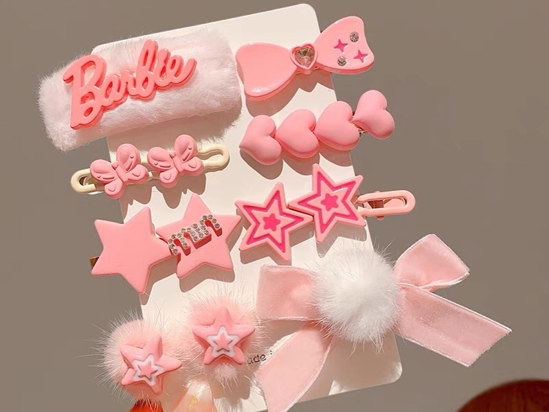 Set kẹp len barbie hồng nhạt